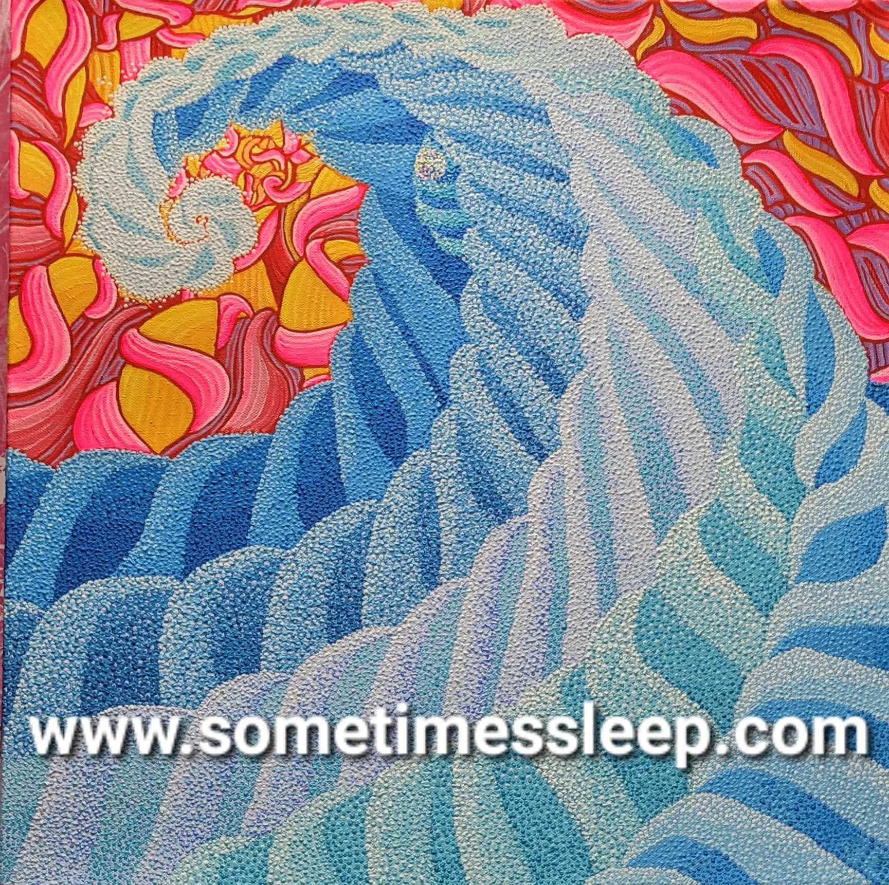 “Hefring of the Nine daughters” is a 24″x 24″ Acrylic on Canvas painting using pointillism as a technique. “Hefring of the Nine daughters” is one of a group of paintings illustrating attempting to bring the Scandinavian mythology of the “Nine Daughters of Ran” to life .